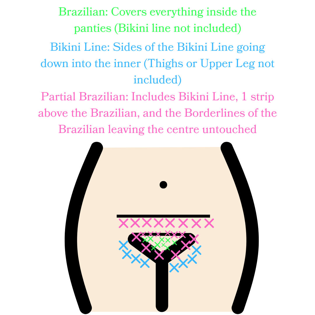 Use this guide to understand the different intimate laser areas. Each area is clearly labeled to help you choose the coverage that best suits your comfort and goals.